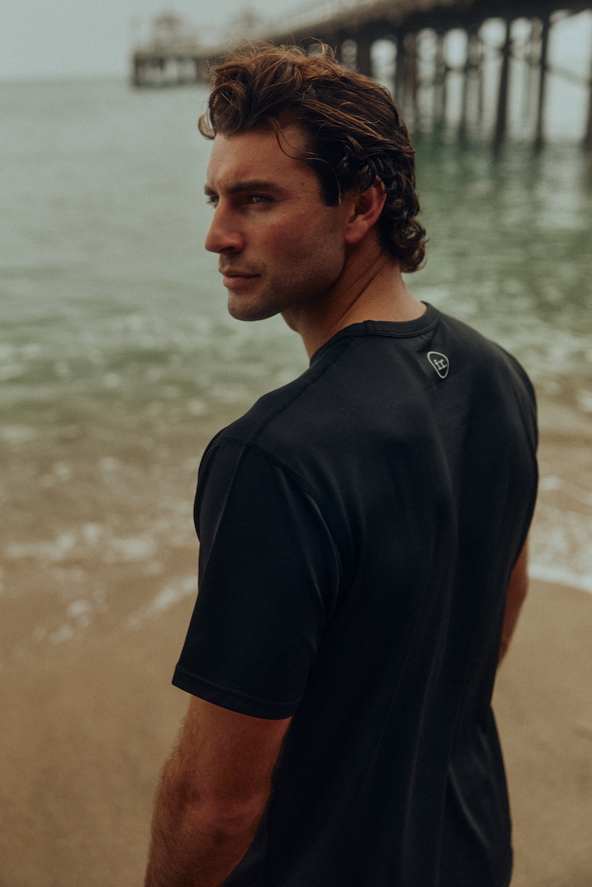 Crafted from a 145 GSM COOLMAX™ blend, this shirt combines moisture-wicking, quick-drying performance with UPF 50+ sun protection. Lightweight and breathable, it’s built with four-way stretch for unrestricted movement, flatlock stitching to reduce irritation, and reflective details for visibility during early mornings or late sessions. Designed for training, running, surfing and long days in the sun.