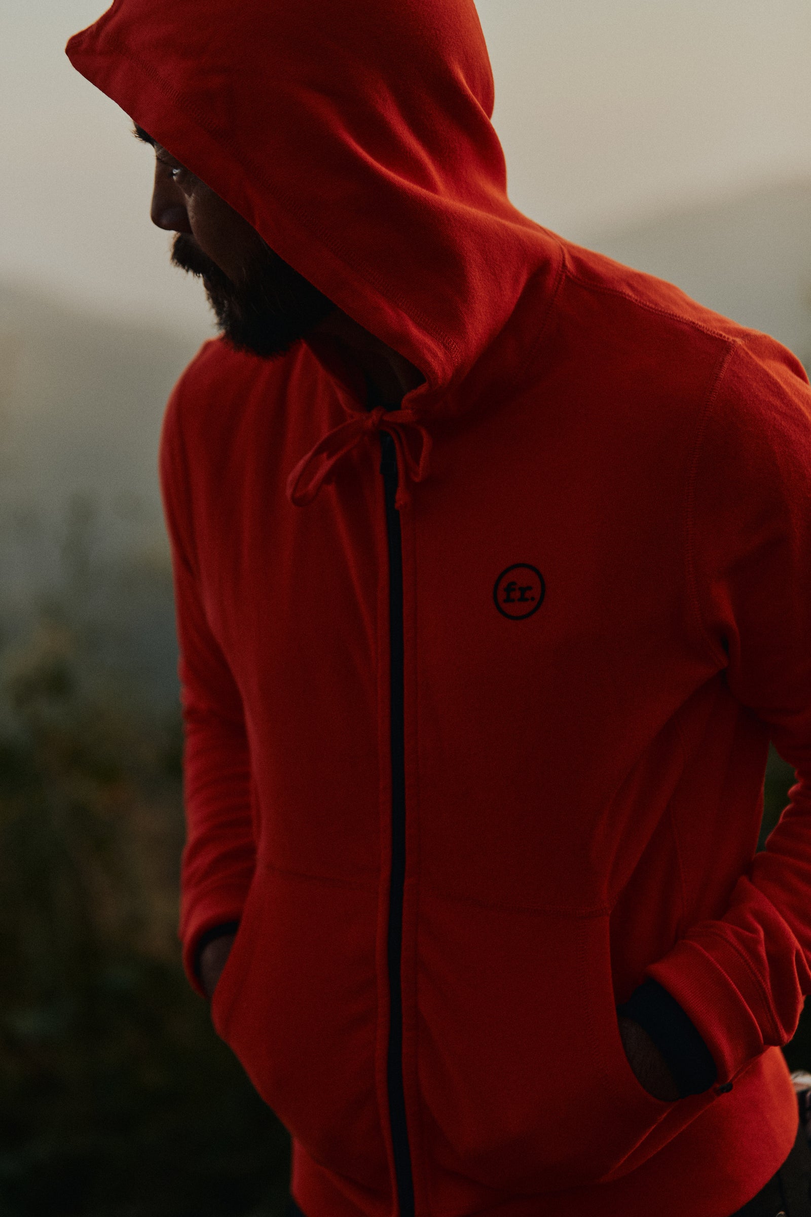 Made from 100% organic cotton with a soft French terry interior, this full zip hoodie is built for comfort and longevity. Flatlock stitching, a double-layered hood, and a YKK metal zipper reinforce the construction, while felt flocked graphics nod to classic moto styles. Designed with a structured fit and sewn entirely in Canada, it’s a piece that balances everyday function with considered detail.